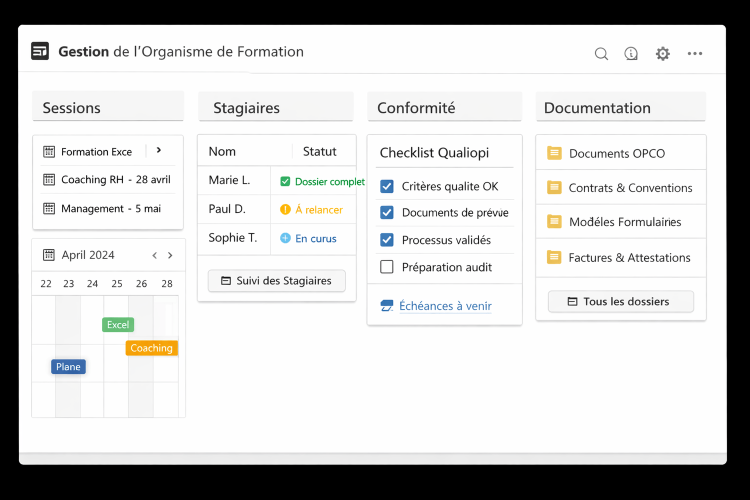 Pourtant, entre les obligations, les documents, Qualiopi et le suivi quotidien, beaucoup d’OF avancent sans structure claire.